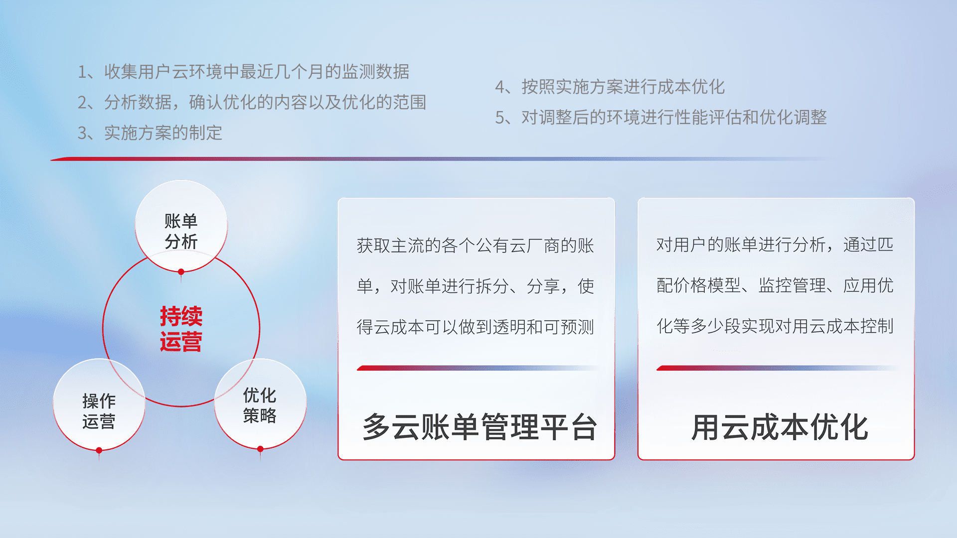 运用智能化工具分析云资源,,,提供日常费用可视化工具,,,自动账单拆分,,,成本优化云上费用,,,降本增效。。